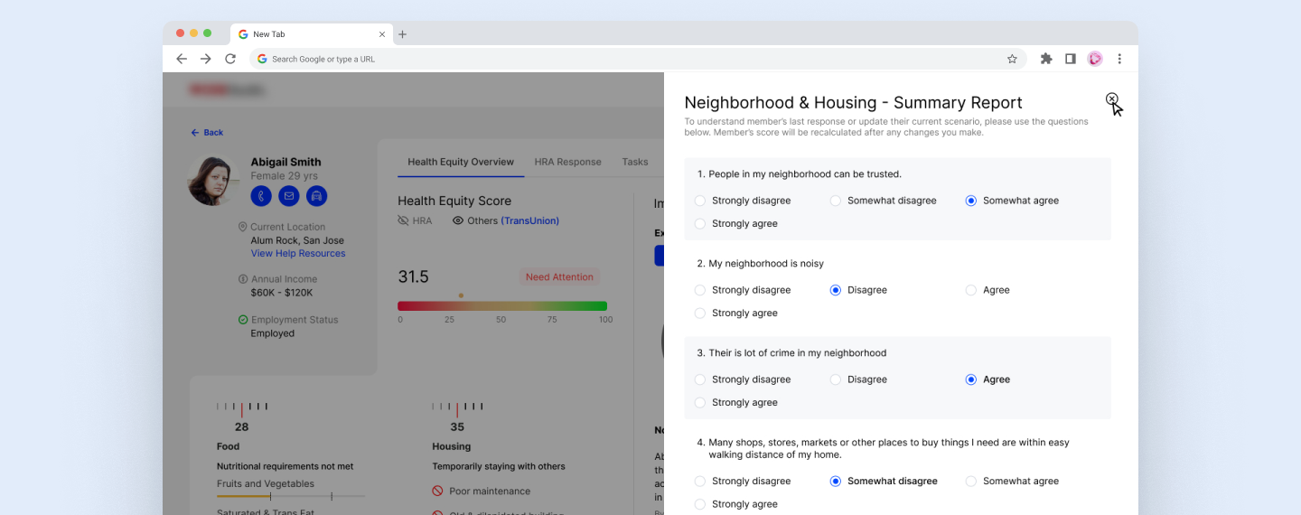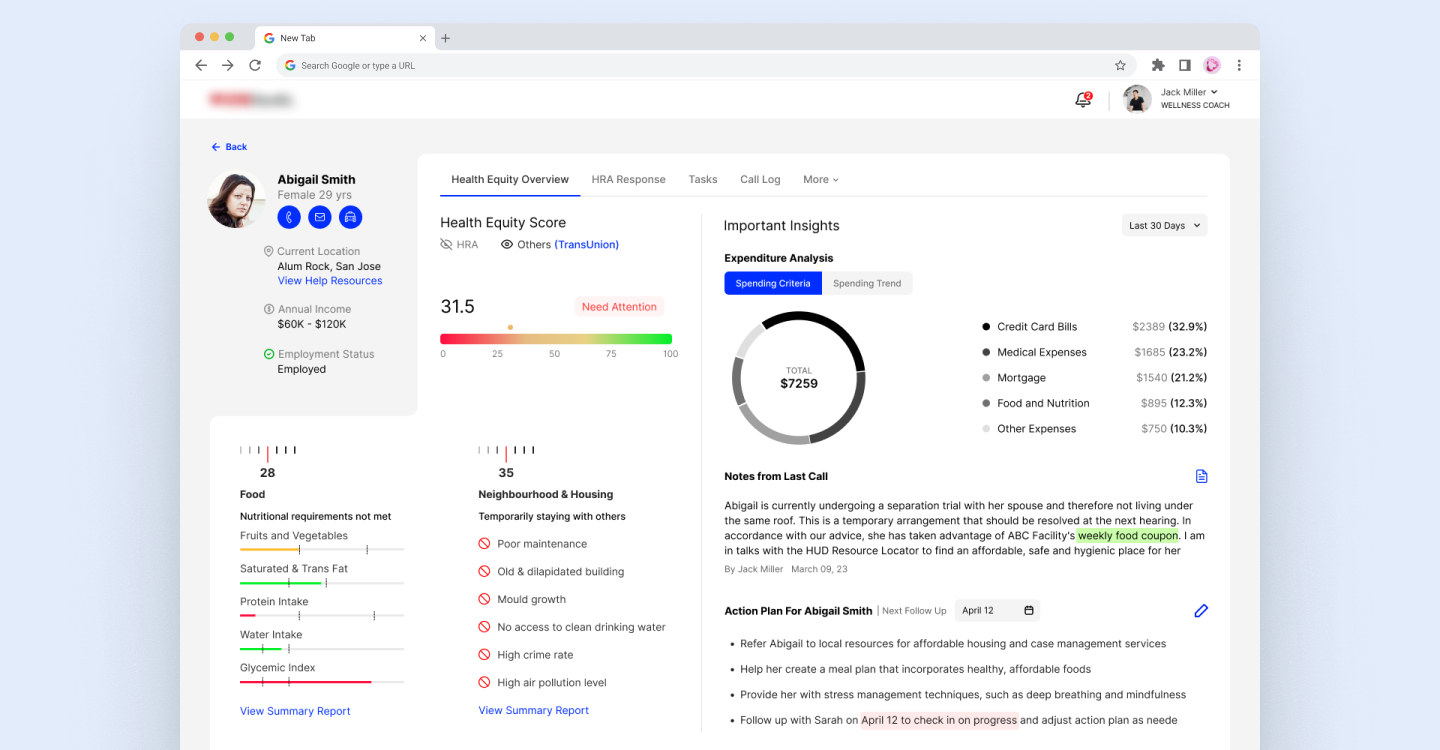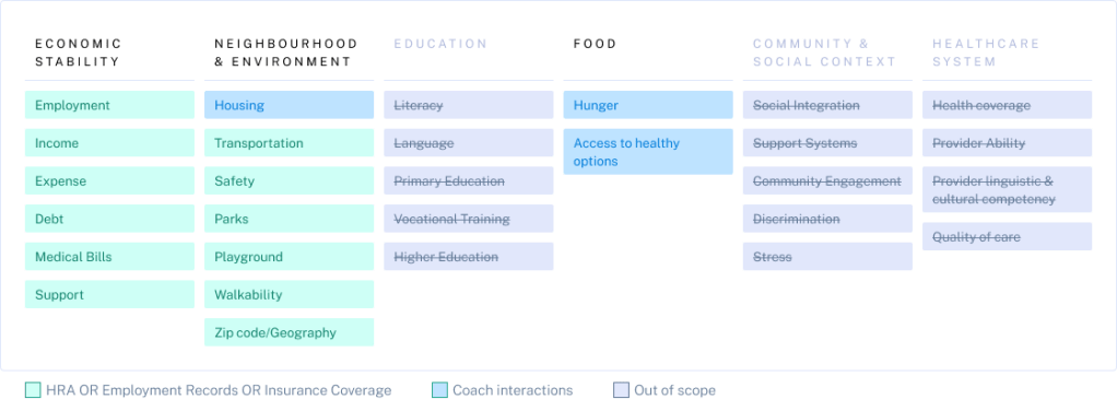 The HRA survey was updated to include questions on nutrition, housing, income, and expenses, helping us better understand a user’s living conditions. We also used insights from wellness coach interactions and available employment or insurance data to build a more complete picture.