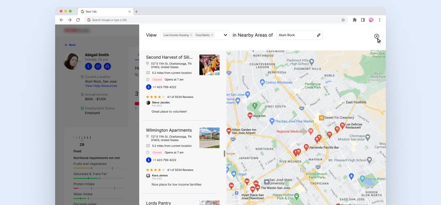 Coaches can view and edit the location to see nearby support options—such as food banks or low-income housing—and guide employees toward relevant local resources, if needed.