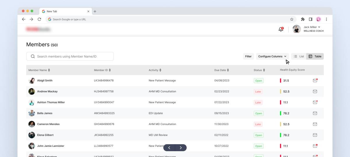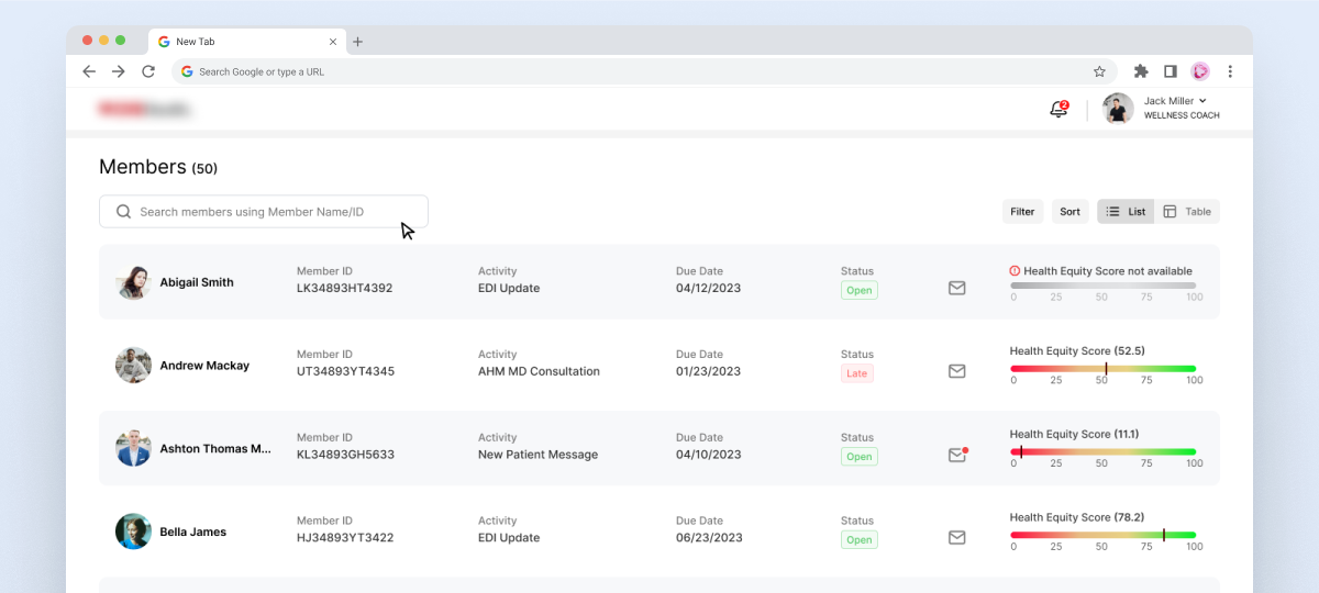 We introduced a simple Health Equity Score to help coaches quickly see which members might need support.
