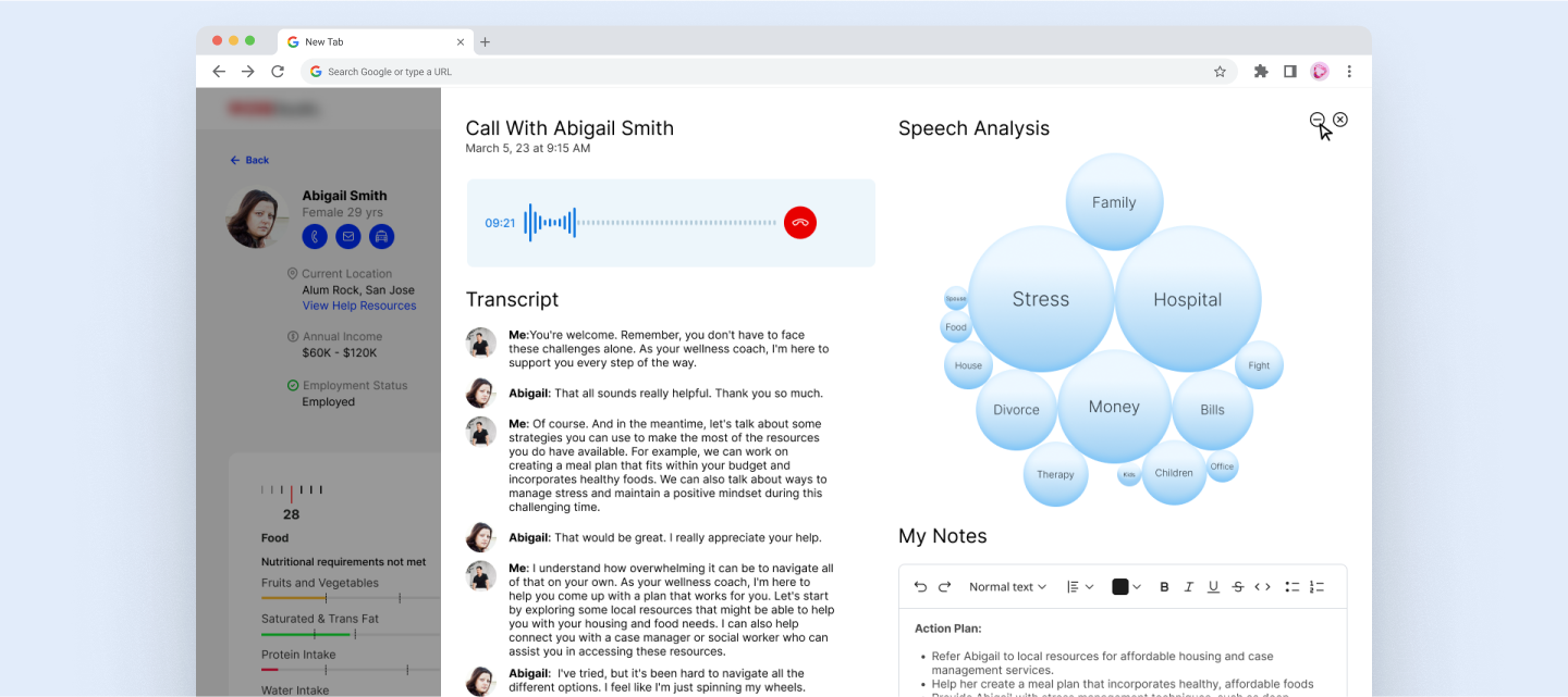 These summaries serve as a starting point, allowing wellness coaches to review, edit, and refine the notes to ensure all key details are accurately captured.